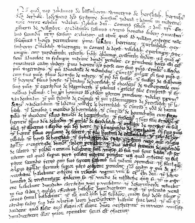 Schiedsspruch des Johann von Basseeheim, Günter von Herschbach, Hermann Hole und Ludwig Schramme bei einer Teilung 1294 zwischen Graf Johann von Sayn und Engelbert von Sayn, Herr zu Vallendar, im Bann Maxsain.
